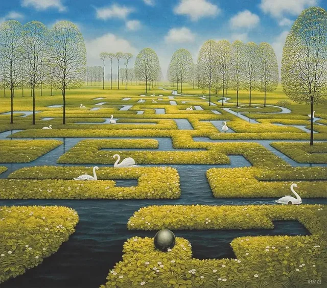 Peinture de Jacek YERKA – Spring labyrinth – 2024